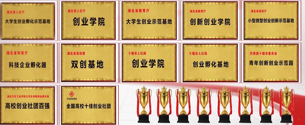 近年来,学校获批湖北省“大学生创业孵化园”“大学生创业孵化示范基地”“大学生创业示范基地”“创新创业学院”等多项荣誉。学生创新创业俱乐部2018年入选“高校创业社团百强”,2021年入选全国“高校十佳创业社团”,2025年入选全国“大学生KAB创业俱乐部”。